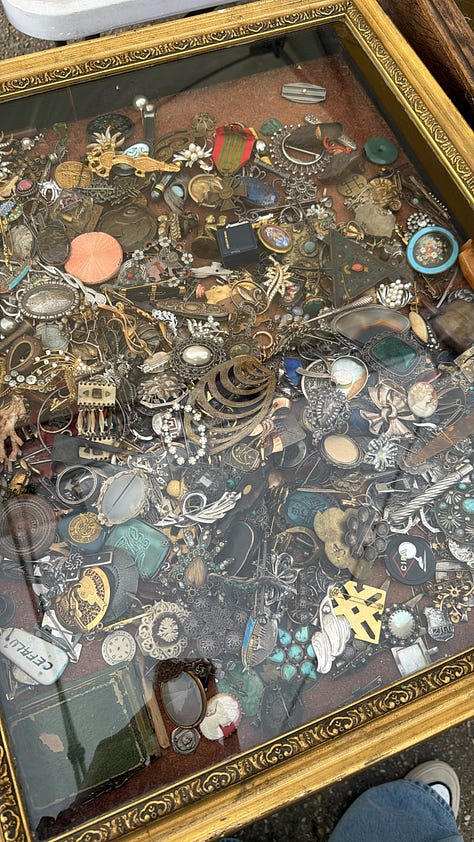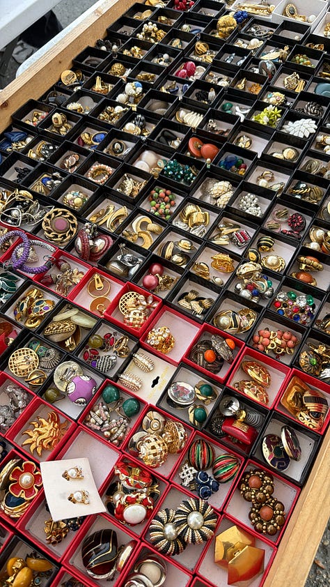 Later in the week, I wandered through the antique and vintage stalls at Les Puces de Saint-Ouen. I had been loosely hunting for a brooch to sharpen up a black blazer for a night out. I found a large, Cartier-inspired leopard generously set with sparkle. Exactly the right thing.