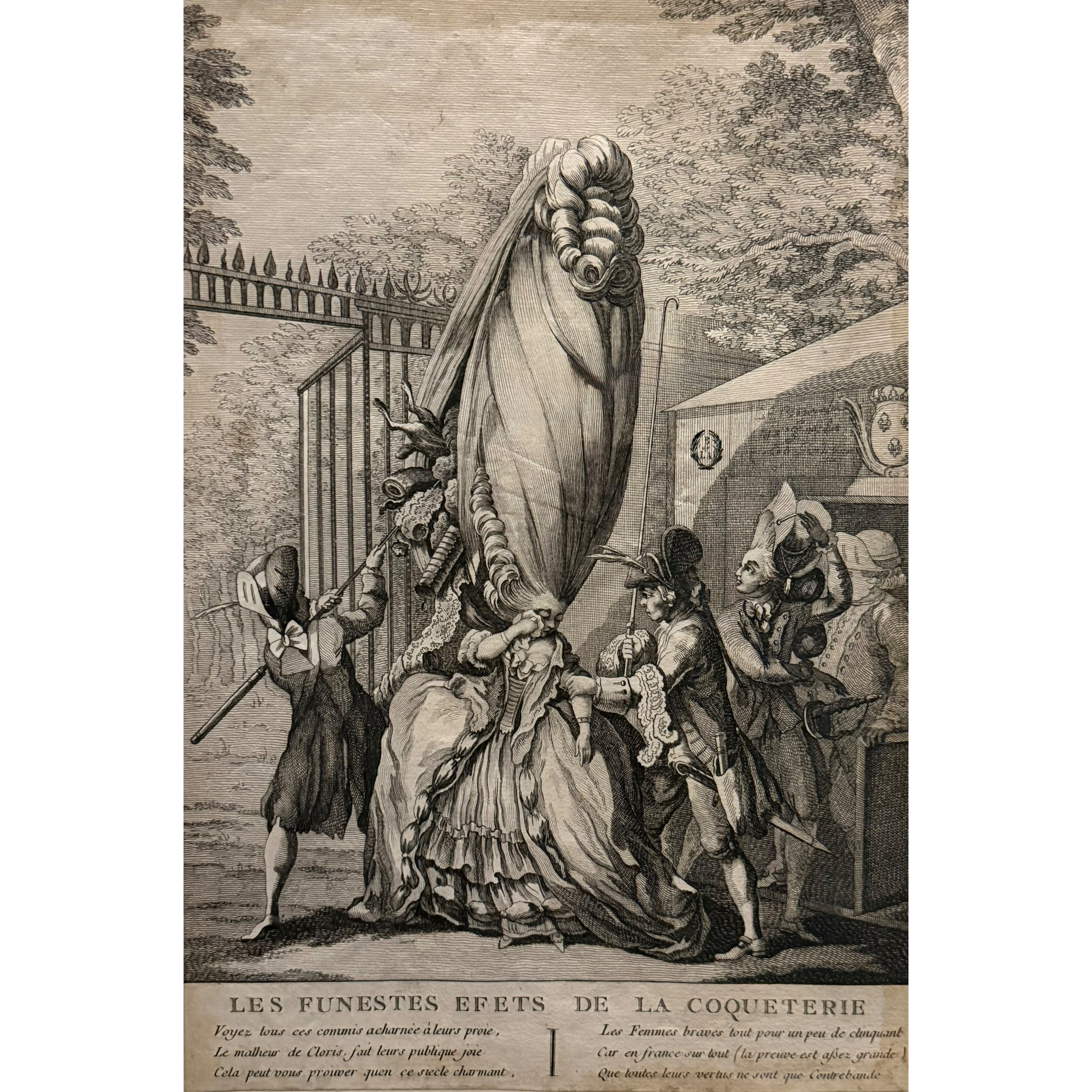 My favorite section focused on hair. Among the displays were illustrated “magazine” plates from the late 1780s that exaggerated towering hairstyles of the period. One style is memorably titled The Hedgehog— a reference not to the animal itself but to the technique: dramatic volume and curls that Marie Antoinette helped popularize.
